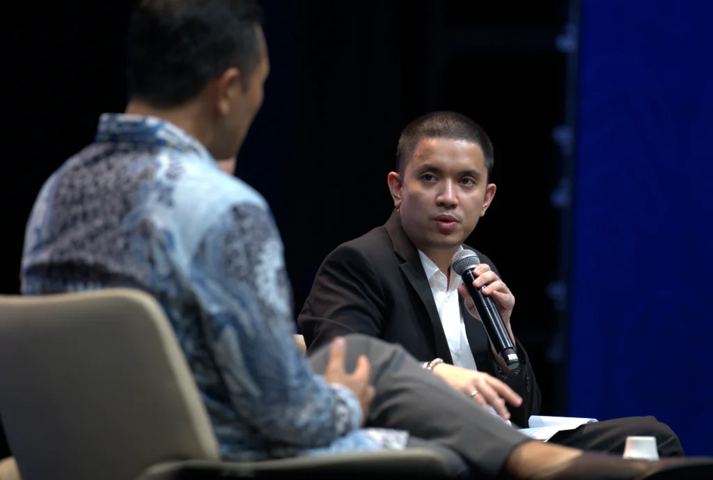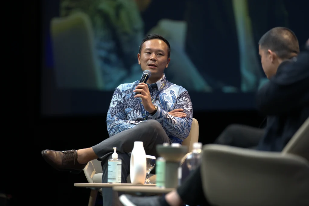 Di atas panggung, dua sosok dengan latar kontras hadir berbagi cerita, yakni Edward Tirtanata, Co-Founder & CEO Kopi Kenangan, dan Andrew Susanto, owner dari Pusat Gadai Indonesia.