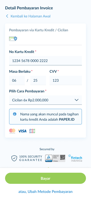 4. Isi detail kartu kredit dan selesaikan pembayaran dengan klik tombol “Bayar”.