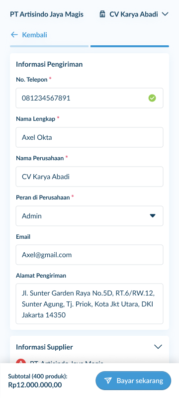 2. Jika sudah, isi lengkap informasi pengiriman sesuai dengan kolom yang tersedia dan klik “Bayar Sekarang”.