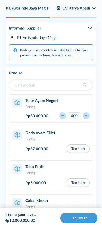1. Lakukan pemesanan lewat PO Form yang dikirim dari WhatsApp supplier dengan memilih produk sesuai kebutuhan bisnis.