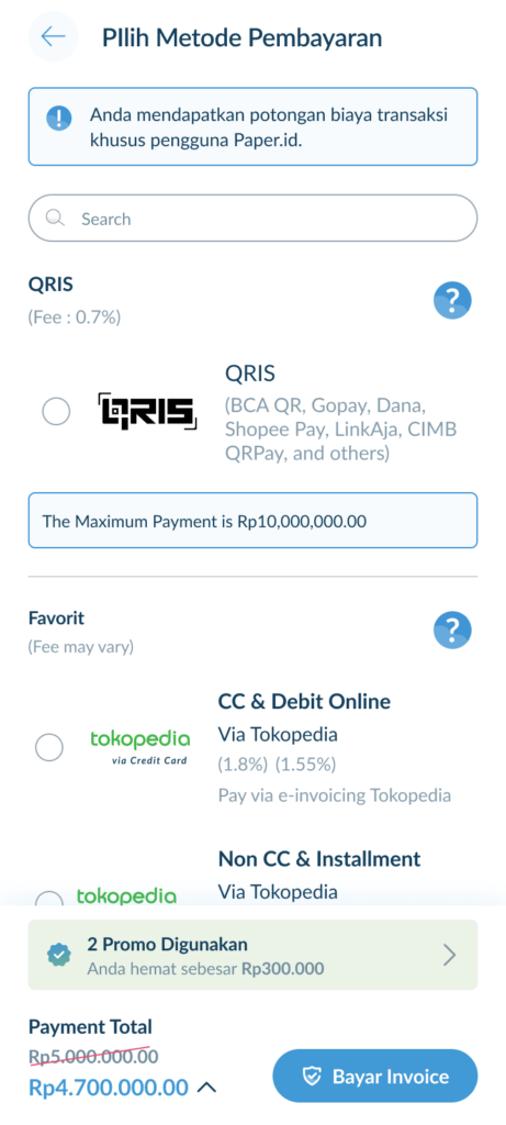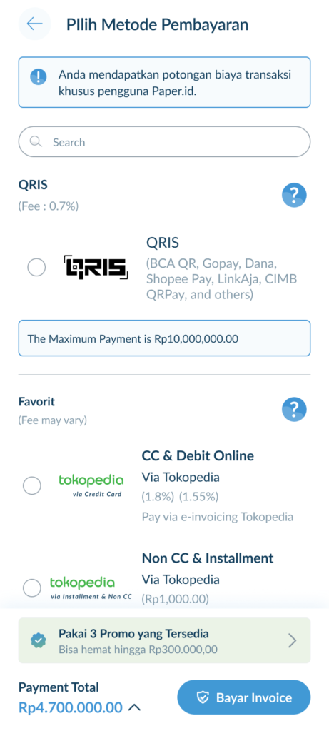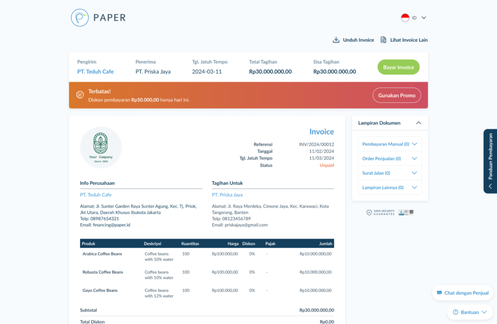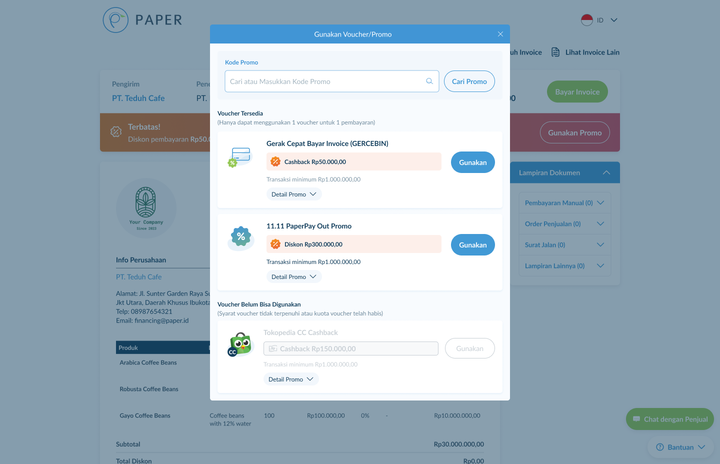 - Promo berlaku untuk pembayaran invoice melalui PaperPay Out dan penagihan melalui PaperPay In.